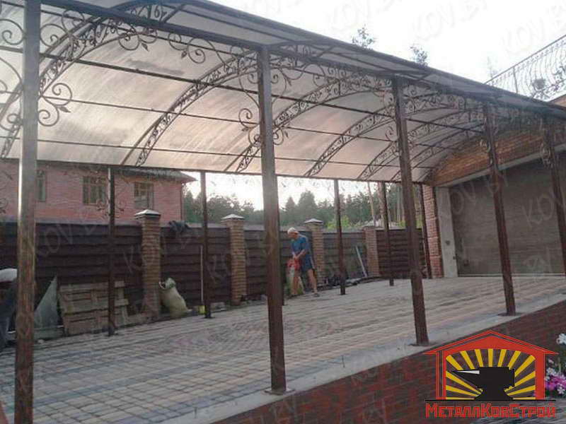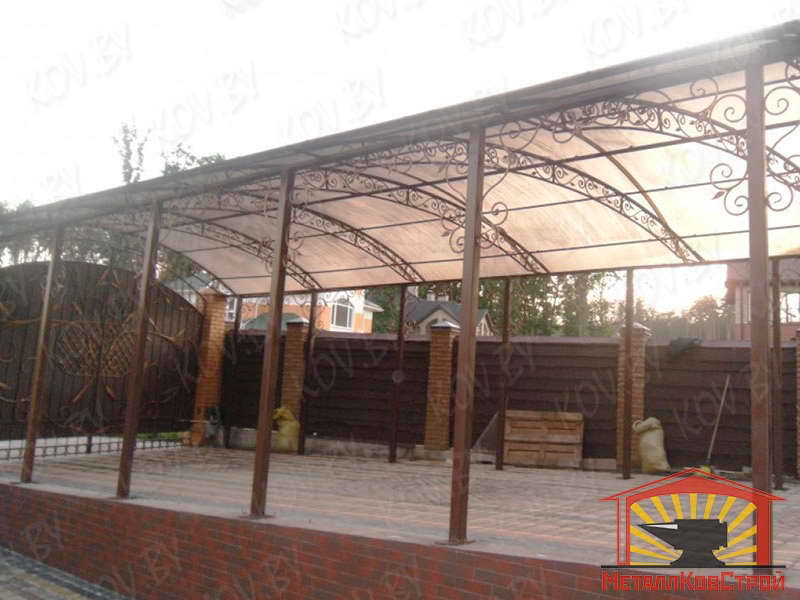 Компания МеталлКовСтрой изготавливает кованые, штампованные, сварные навесы и козырьки. Навес для авто, навес над крыльцом, навес из поликарбоната, а также навес любого другого назначения от наших специалистов отлично справляется со своими функциями, а процесс сотредничества с наши оставит у вас только благоприятные впечатления.
