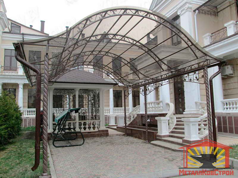 Компания МеталлКовСтрой изготавливает кованые, штампованные, сварные навесы и козырьки. Навес для авто, навес над крыльцом, навес из поликарбоната, а также навес любого другого назначения от наших специалистов отлично справляется со своими функциями, а процесс сотредничества с наши оставит у вас только благоприятные впечатления.